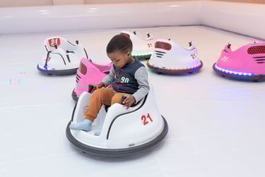 Little Ones aged 7 and under can experience a thrilling bumper car experience! Our sleek electric bumper cars with remote controls glide over our smooth custom tracks. With lights flashing and music pumping, treat the kids to epic fun.