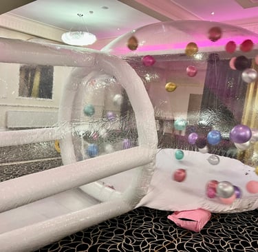 Delight and amaze guests at your next event with our showstopping Bubble House! This bubble dome allows kids to crawl, explore, and bounce while surrounded by a hundred balloons. For added excitement, you can provide cash to toss inside the bubble house for kids to grab and collect. Perfect for weddings, photoshoots, birthdays, school events, festivals and more.